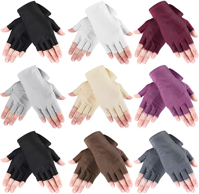9 Pairs Summer Fingerless Gloves Half Finger Sun Protection Gloves Touchscreen Driving Gloves for Adult