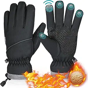 Winter Gloves Waterproof Windproof for Mens Women, Thermal Warm Gloves for Cold Weather, Grip Snow Gloves for Touch Screen