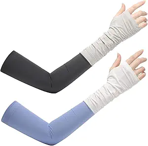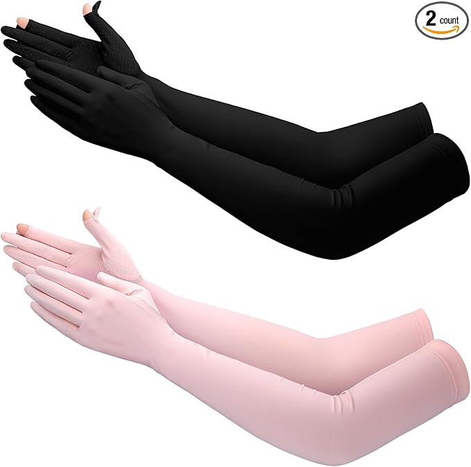 2 Pairs UV Long Sun Gloves Women's Sunblock Driving Gloves Non Slip Full Finger Arm Sun Protective for Outdoor Sports