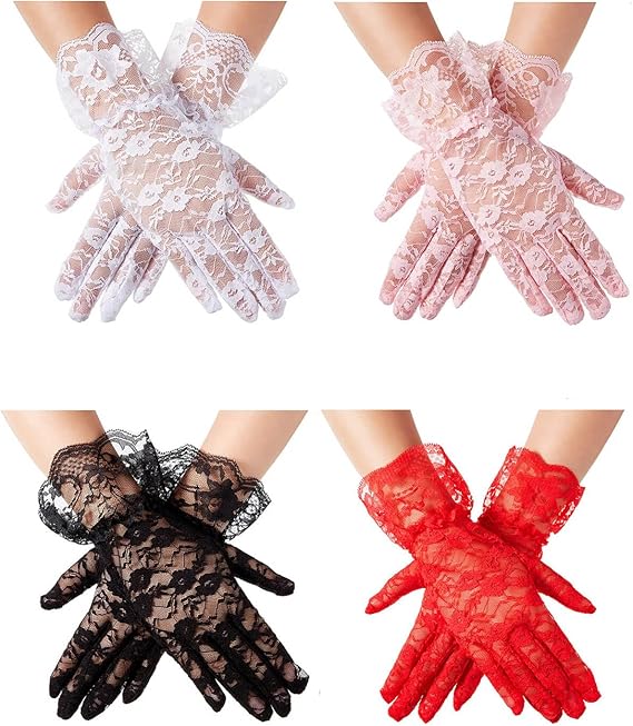 4 Pairs Lace Gloves Women Tea Party Gloves Elegant Short Gloves Flower Bridal Wedding Gloves Sunblock Gloves Opera Prom