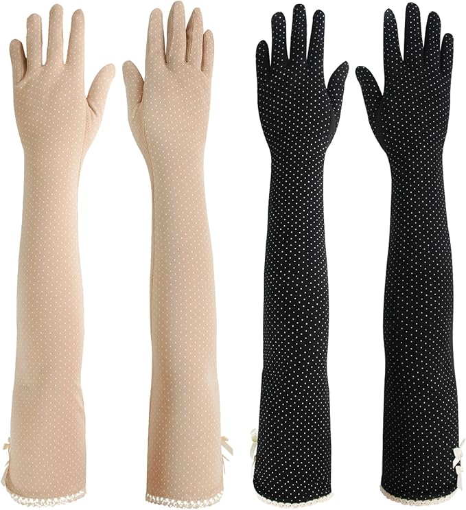 Women's Long Anti-UV Breathable Arm Sun Block Driving Gloves, 2 Pairs