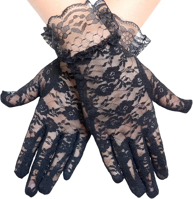 Black Lace Gloves for Women Elegant Short Gloves Wrist Length Floral Gloves Tea Party Gloves Sunblock Bridal Gloves