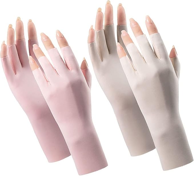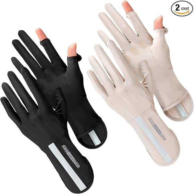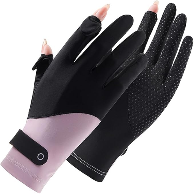 Women Cool Ice Silk Fingerless Driving Gloves Sunblock Non-Slip Outdoor Light-Thin Gloves Fishing Hiking Outdoor